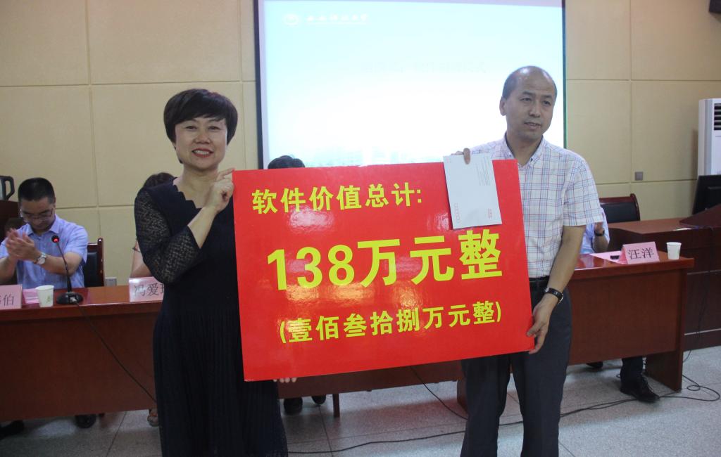 经理李占利代表公司向与会的企业界代表表示热烈的欢迎和诚挚的问候,并介绍了公司、公司的基本情况。他指出,此次签约将为计算机公司深化创新创业教育改革,探索“产教融合、校企合作”应用型人才培养路径,构建多样化的合作模式提供助力。企业代表刘玉波希望本次与太阳集团122cc计算机公司的战略合作协议的签署将会推动双方在实践教学、应用型人才培养、产学研相结合等方面的合作进入新的阶段,协调创新,取得更多合作成果,在合作中实现共赢。专业实验室主任温乃宁代表公司接受北京学佳澳软件科技有限公司捐赠价值138万的教学实训软件。