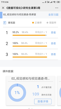 在线教学已经进行了五周,马老师的《虚拟现实技术》和《数据可视化》课程的课堂气氛活跃,同学们连麦发言讨论积极,答题交互参与率93%以上,聊天区的文字互动活跃,章节单元测试成绩约90%以上。