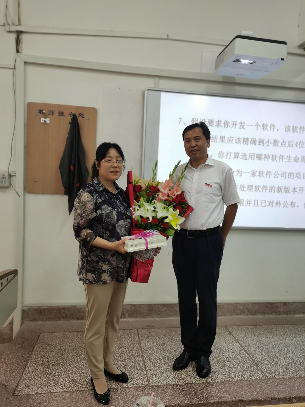 陈春林在课间休息时间来到教室,为罗晓霞教授送上鲜花和节日问候,并向其赠送《习近平谈治国理政》(第3卷)。对她在教学科研一线辛勤耕耘、努力付出表示衷心的感谢。罗晓霞衷心感谢公司的关怀和支持,表示将努力工作,开拓创新,为公司发展贡献自己的力量。