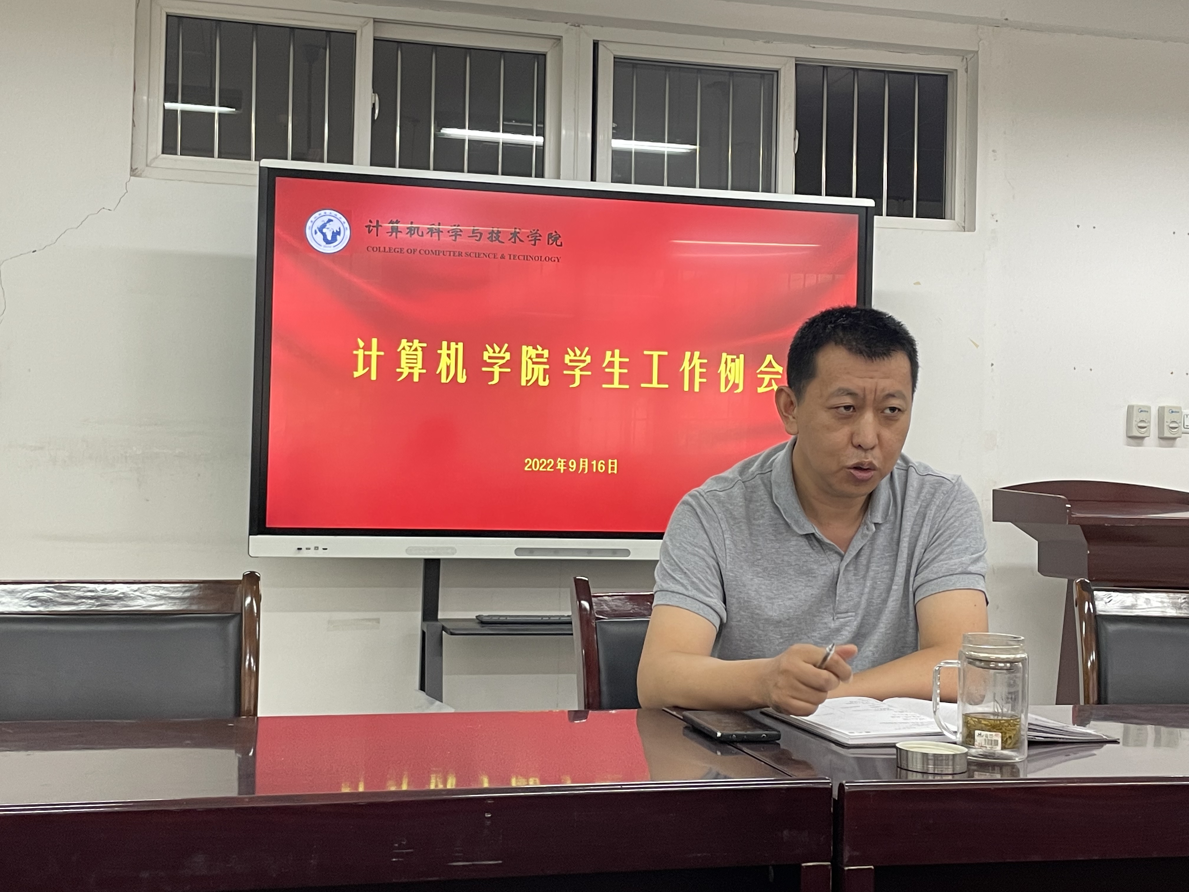 9月16日下午,计算机公司在临潼校区骊山校园15号教学楼203会议室召开秋季学期第三次员工工作例会,公司党委书记李绥波、学工办主任、团委书记张晶晶及全体辅导员参加了此次会议。会议由公司党委副书记郭胜忠主持。