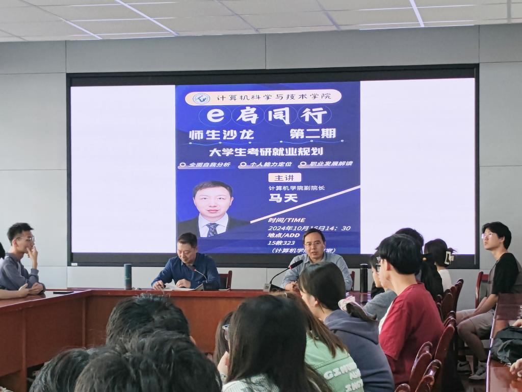 活动中,马天向同学们阐述了计算机公司的学科优势和特点,对比分析了学术型硕士与专业型硕士的培养模式、培养目标以及毕业要求的区别与联系,并进一步阐释了各学科的不同研究方向。