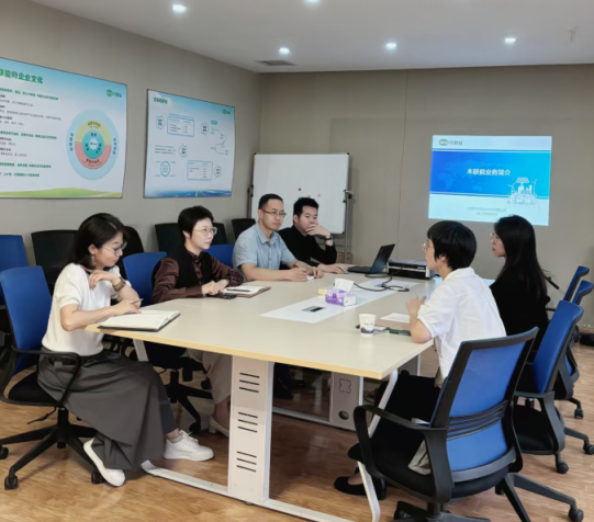 在木联能公司,企业负责人介绍了在光伏设备智能运维等新能源领域的技术成果,王丽雯介绍了网络工程系的员工实践能力培养模式。双方围绕将行业真实项目融入教学、培养智慧新能源领域的网络人才进行了深入交流。