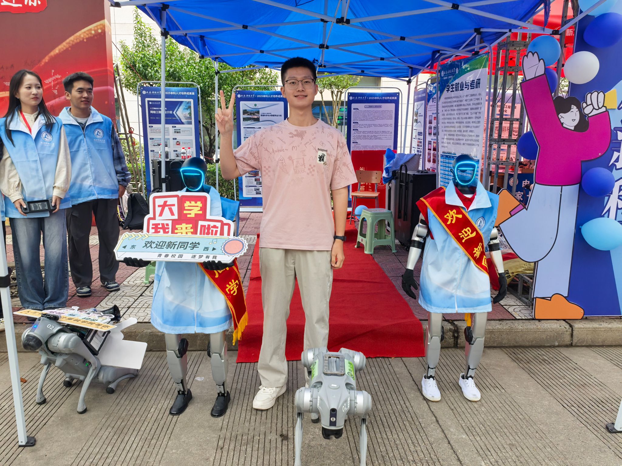 在公司迎新点,机器人“能小智”化身为贴心向导,向新生详细介绍报道注意事项,并参与校徽佩戴仪式。它以精准的动作,双手为学子奉上承载着公司精神与荣誉的校徽,传递着公司对新生的殷切期望。与此同时,机器狗“西小科”发挥自主导航、自动避障的优势,为新生引路,护送他们顺利抵达宿舍,让初来乍到的新生感受到家一般的温暖与便捷。