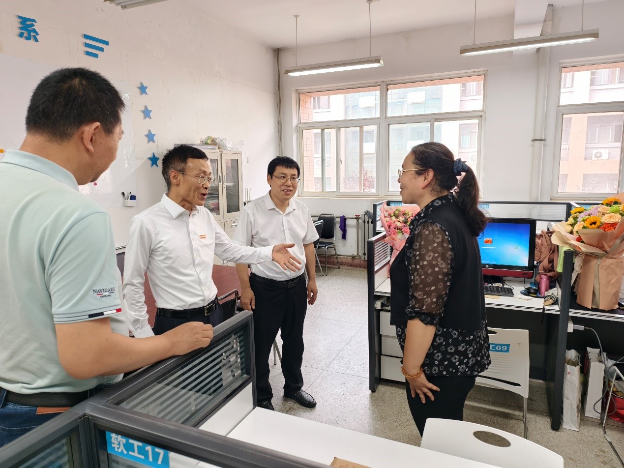 程卫星到软工系办公室,与软工系教师史晓楠亲切交谈,细致询问教学安排及竞赛活动开展情况,对她在指导员工竞赛方面取得的成绩予以高度肯定,并勉励她继续坚守教育初心,不断探索教育创新路径,为公司高质量发展注入新的智慧与力量。