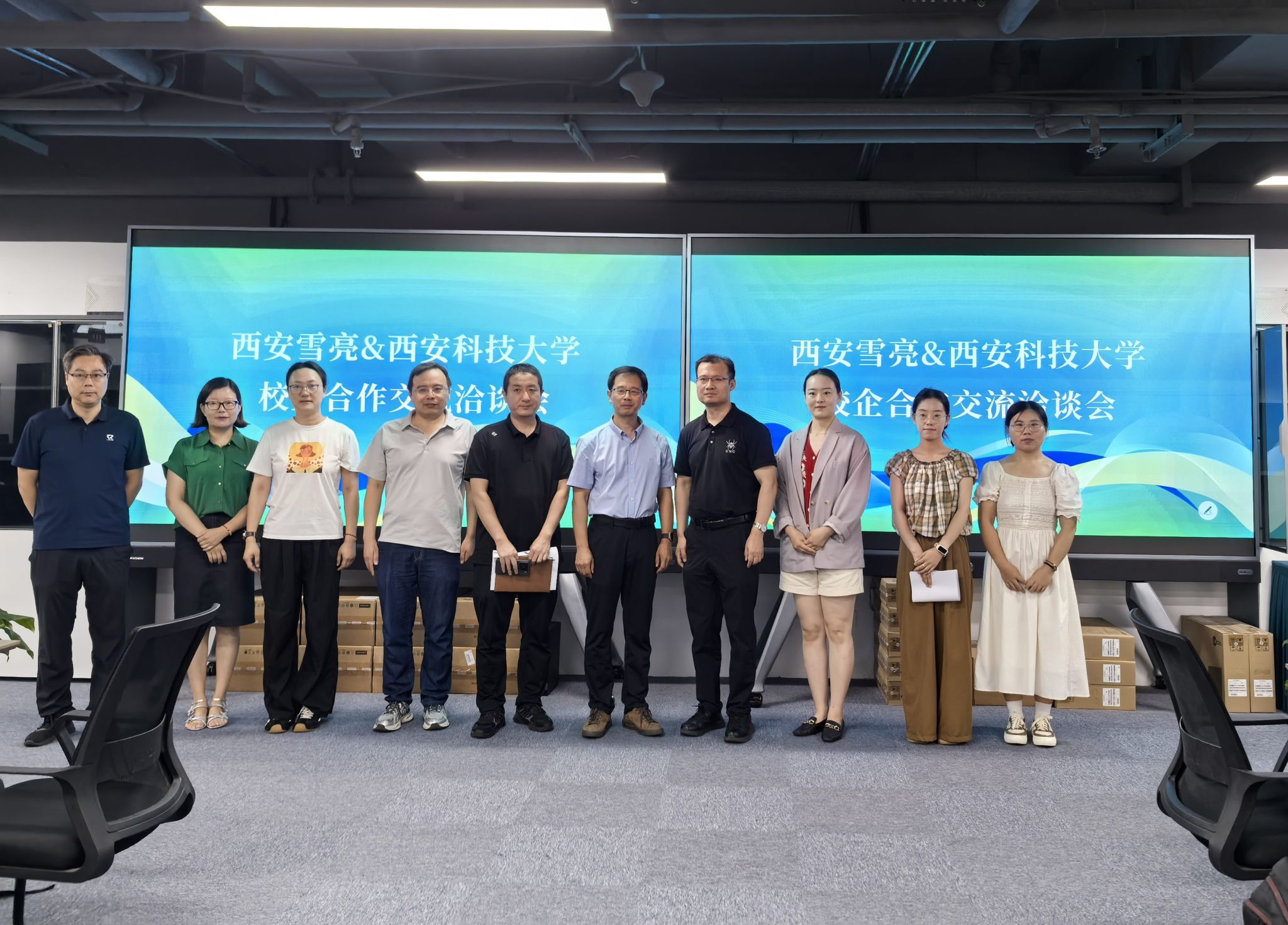 为贯彻落实“访企拓岗”促就业工作要求,进一步了解企业人才需求,强化校企合作,7月11日,太阳集团122cc经理于振华、党委副书记郭胜忠,计算机科学系、软件工程系、信息科学系、网络工程系相关人员及相关辅导员前往海康威视西安雪亮工程项目管理有限公司开展校企合作交流活动。海康威视西安雪亮工程项目管理有限公司副总经理刘伟杰、曹伟龙,校企合作负责人王雨嫣等相关部门负责人参加了活动。
