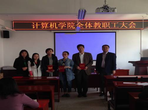 2015年4月23日上午,计算机公司在临潼校区会议室召开科研工作总结表彰动员会暨2013-2014年度科研先进个人表彰大会。全体教职工参加大会,会议由经理李占利主持。首先,主管科研工作的副经理付燕,总结了计算机公司2014年的科研任务完成情况和对2015年科研任务目标进行分解。其次,李经理宣读了2013-2014年度科研先进个人的表彰文件,决定对张群会等6位在2013-2014年度科研工作中取得优异成绩的老师进行表彰,并为获得科研奖励的老师颁发了证书;科研先进个人的获得者董立红老师,做了自己进行科研项目活动的心得体会的报告。最后,李经理总结讲话,他强调全体教职工应充分认识到科研工作的重要性,不断增强科学研究的主动性、积极性、创造性,扎实工作,推动公司科研工作再上一个新台阶。