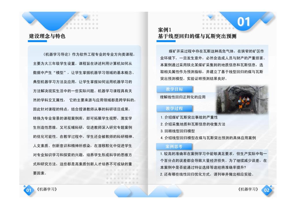 “机器学习方法在煤矿相关行业中 的应用”科研成果转化教学资源案例库