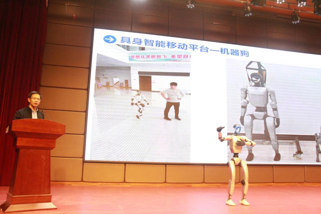 于振华教授在题为《能源大模型:赋能煤炭工业智能化转型的创新引擎》的报告中系统阐述大模型的起源与发展趋势,重点展示了公司自主开发的能源领域大模型在公司产品和科学研究中的创新应用。在具身智能平台展示环节,详细介绍了机器狗在复杂井下环境实现自主巡检所涉及的环境感知、路径规划与动态避障等核心技术,同时也展示了人形机器人的一些创新应用。尤为引人注目的是,这些前沿技术的研究与开发过程中,均有公司本科生作为重要力量参与其中,充分展现了公司在科研反哺教学方面的扎实成效。