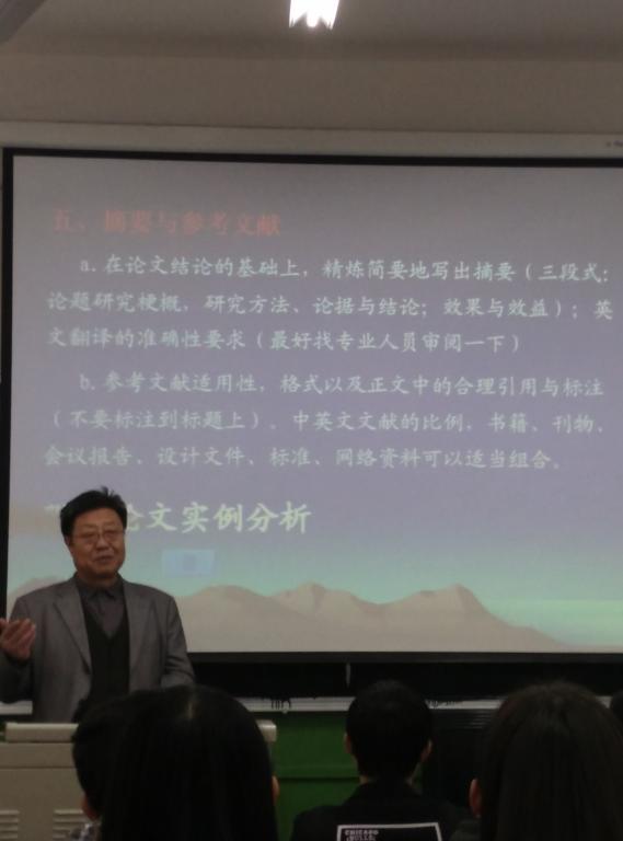 报告内容主要围绕四个方面展开,一是学位论文的选题,开题工作的指导,二是学位论文撰写的工作指导,三是学位论文基本结构指导,四是学术科研论文写作指导。龚老师饶有生趣地讲述了写论文过程中应该注意的问题,并就其中重要的诸如论文结构的问题用实例给予了讲解,比如他之前所带的优秀的研究生所发表的论文。