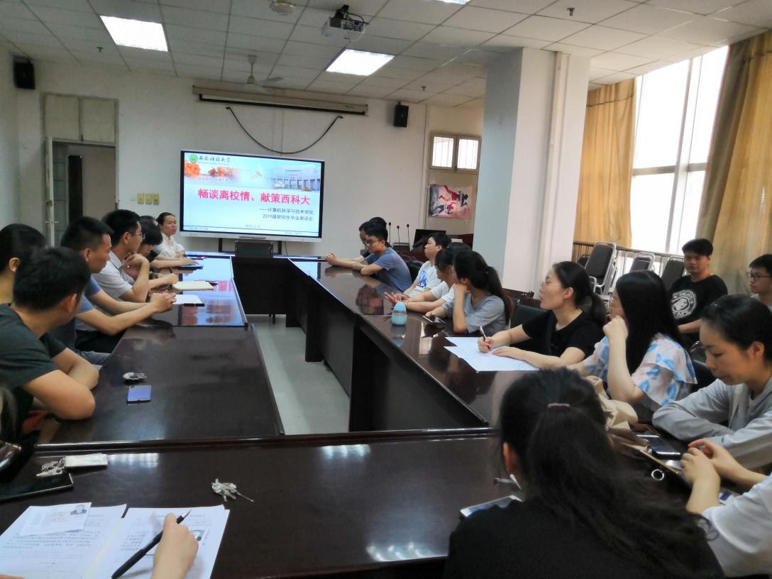 又到了一年一度的毕业季,对于毕业生而言,即将面对复杂的社会,即将踏上一段新的旅途,公司是人生中最后一块纯洁的圣地,三年的老员工活纯粹而充实,在这片圣地里有对知识的渴求、对同窗的手足情深、对理想的执着追求,也有公司生活带给他们对世界最纯真的留恋。2019年6月12日在毕业季到来之际,作为太阳集团122cc公司更好的发展的一项重要工作,公司对硕士生的科研感受和日常生活予以高度重视。针对毕业生的三年硕士生活的感受这一主题,公司不仅组织了毕业生经验交流会,还征集了毕业生三年生活中对母校的建议。参加本次座谈会的主要有计算机公司书记冯爱玲、党支部书记陈韦伯、计算机公司辅导员范文静和全体2019届毕业生及2020届研究生。