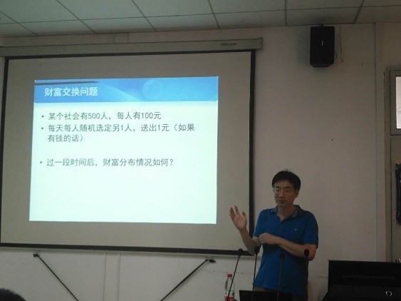 张发教授主要从自然与社会中的复杂现象、ABM建模仿真过程、ABM建模仿真应用、ABM研究工具、问题与挑战等方面展开论述,结合他主持参与的项目分析了财富交换问题、EI Farol酒吧问题、昆虫数量如何变化等问题,阐述了复杂系统建模、仿真、应用等的探讨和结果分析的过程。