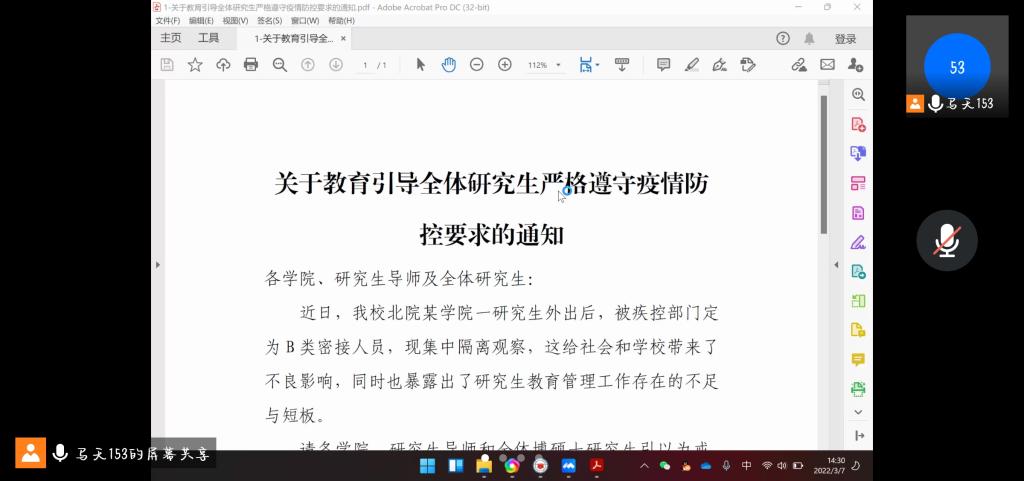 会上,马天带领大家学习了《关于教育引导全体研究生严格遵守疫情防控要求的通知》与《关于进一步做好疫情防控期间研究生公司产品工作的通知》两份公司文件,陈伟伯带领学习了《太阳集团122cc新冠疫情防控期间员工管理暂行规定》等文件精神,对研究生在校期间日常管理规定及研究生导师工作职责进行了详细解读。就疫情期间,研究生出现的各类问题进行通报,希望研究生导师的积极配合与努力工作,导师们能够继续配合与支持公司研究生管理工作;同时指出疫情防控任务重、责任大,要明确研究生导师作为公司产品的第一责任人,坚持一手抓公司产品和指导工作,一手抓研究生疫情防控工作。马天强调疫情防控为一项常态化工作,要求研究生及导师们要主动提高政治站位、提高思想认识,克服麻痹思想、侥幸心理,要站在防疫大局角度高标准遵守公司管理规定,严细节做好个人防控,同时提醒各位导师要加强对研究生的人文关怀。