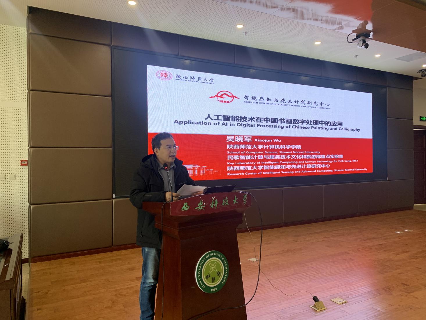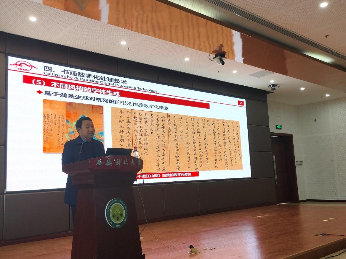 11月24日,陕西师范大学吴晓军教授应邀做客公司胡杨林大讲堂,作了题为《人工智能技术在中国书画数字处理中的应用》的学术报告。此次报告会由研究生院主办,计算机公司承办,计算机公司党委副书记郭胜忠主持,我校300余名研究生及教师聆听了报告。