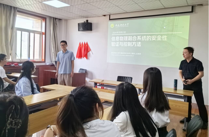 硕士生导师丛旭亚介绍了信息物理融合系统在关键基础设施中的安全问题以及面临的挑战,详细阐述了信息物理融合系统安全问题中形式化方法的基本问题和解决方法。硕士生导师尹慧平对混沌理论与无线通信发展问题做了详细讲解,从移动通信发展史展开,详细介绍了混沌理论、应用和混沌无线通信发展,最后为我们分享了科研心得。