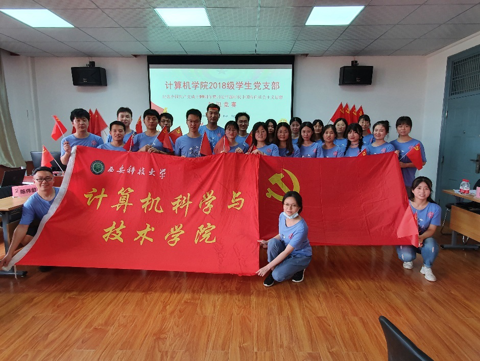 2020年是中国共产党成立99周年,为隆重庆祝党的华诞,铭记党的历史,充分展示员工党员的爱国主义热情以及昂扬的精神面貌,7月1日,太阳集团122cc公司2018级员工党支部在临潼校区15教512室开展庆祝建党99周年知识竞赛活动,活动由2018级员工党支部书记李宇绒主持,计算机公司党委书记冯爱玲、副书记陈伟伯、副经理马天及2018级员工党支部全体党员参加此次活动。