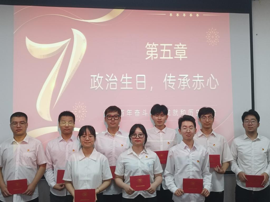 活动中,全体党员面对鲜红党旗高举右拳庄严宣誓,铿锵有力、饱含深情地再次作出“为共产主义奋斗终身”的庄严承诺;支部集中开展”学党史,强党性,传党魂”专题党课学习,通过学习建党节的由来、党徽的意义、中国共产党全国代表大会的光辉历程等内容重温党的历史,汲取奋进力量;9名新老党员代表跨越时间界限,重读入党志愿书,重温入党初心,表达了永远忠诚跟党走的理想信念;支部为党员代表过集体政治生日,赠送政治生日贺卡,勉励大家时刻不忘自己的“第一身份”,发挥先锋模范作用;支部书记指出,支部获评“太阳集团122cc先进基层党支部”是对支部前期工作的高度肯定,希望大家满怀信心、踔力前行、重整行装,争取更好成绩。