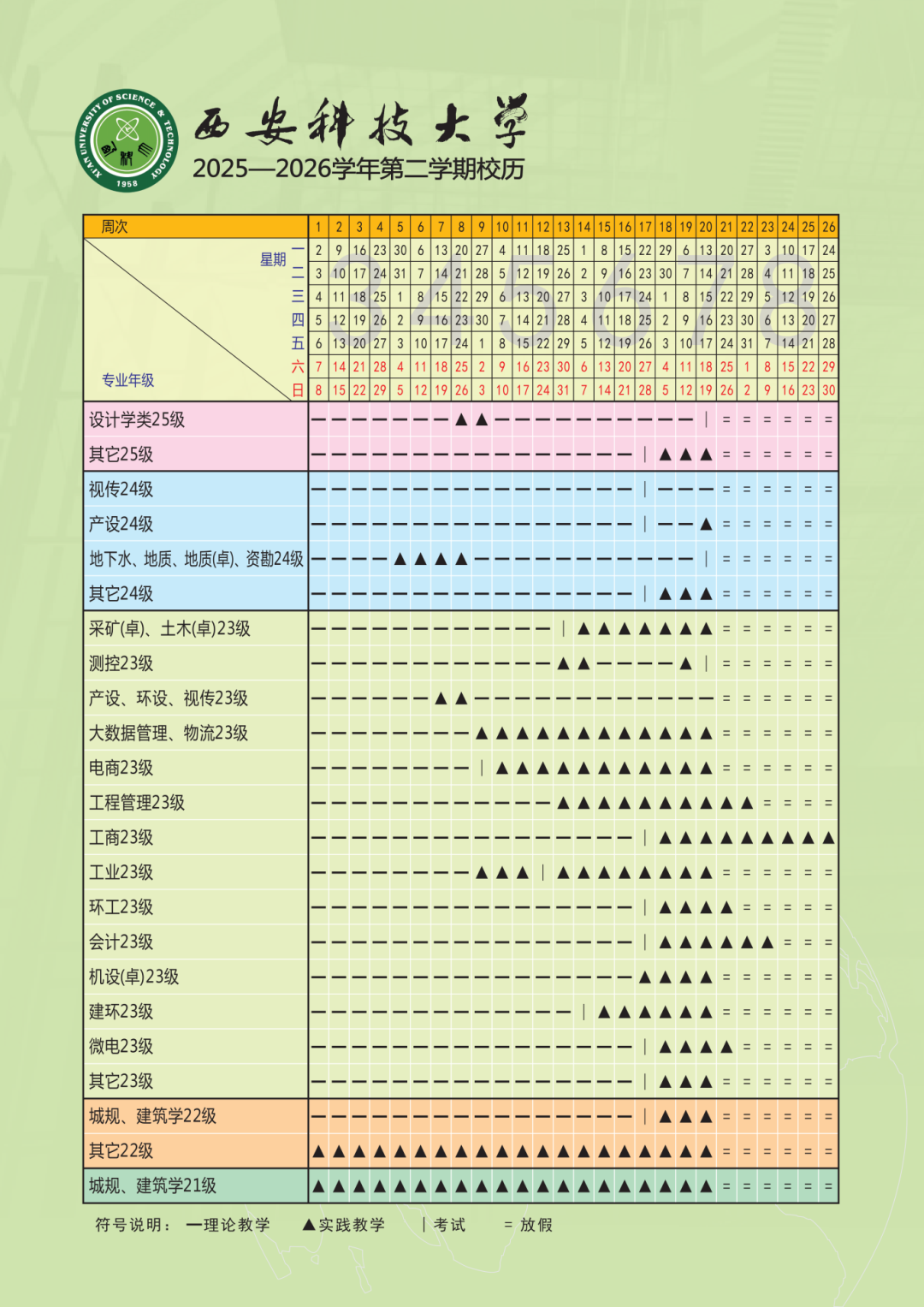 2025-2026学年第二学期校历