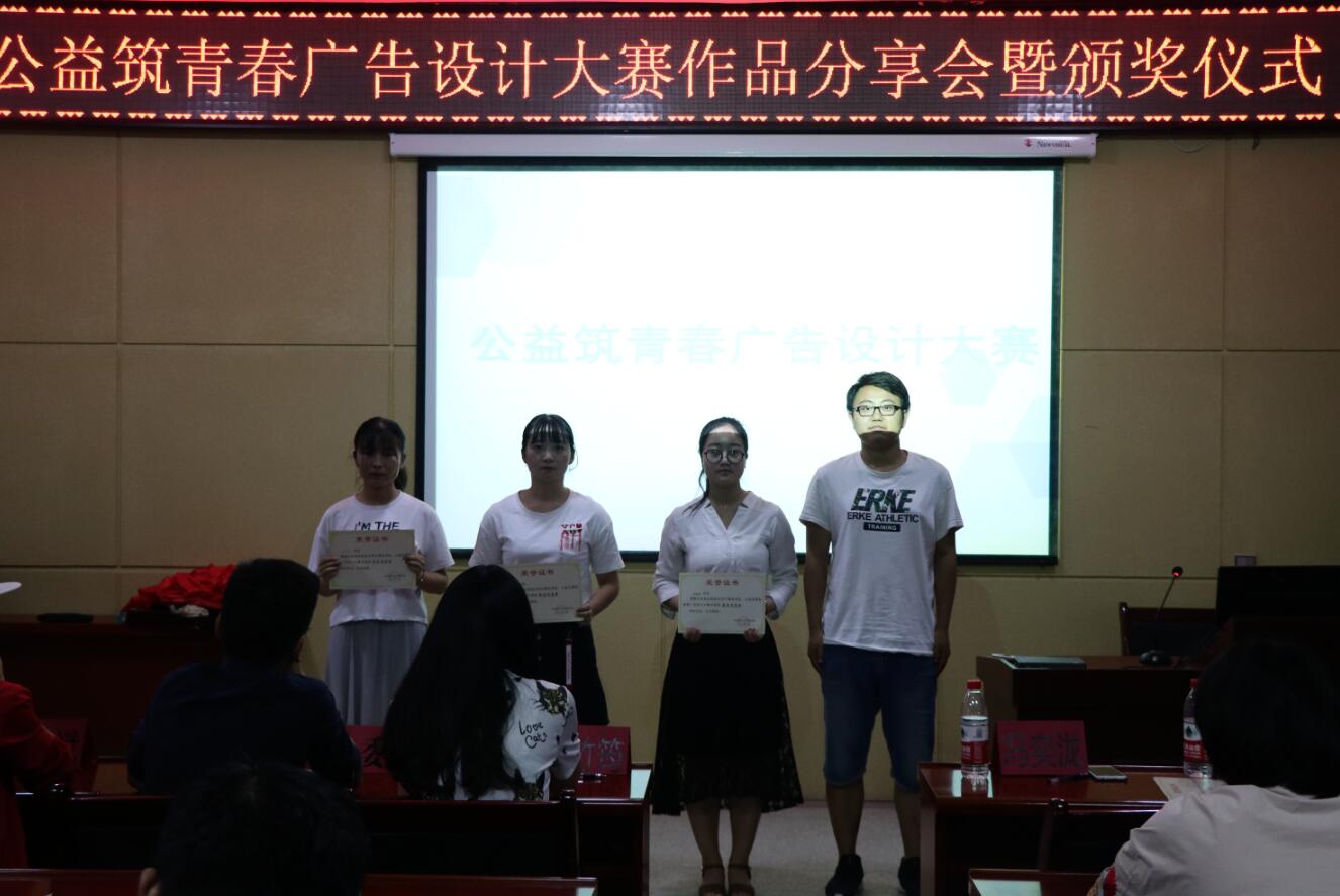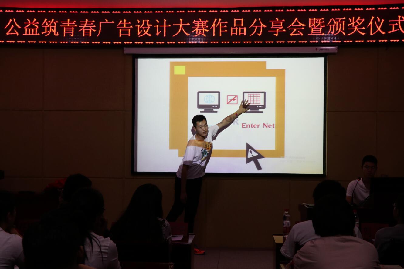 为学习贯彻党的十九大中绿色发展理念,5月13日晚,计算机公司在临潼校区骊山校园16教323会议室举办了“学习贯彻十九大,公益志愿筑青春”广告设计大赛作品分享会暨颁奖仪式,入围决赛的参赛选手及员工代表80余人参加了此次分享会。
