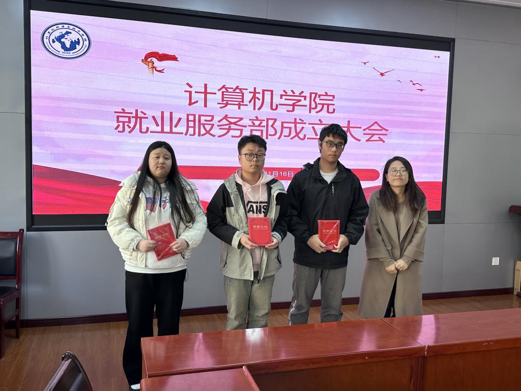 11月16日,计算机公司在骊山校园公司会议室举行员工就业服务部成立大会。计算机公司党委副书记郭胜忠,学工办主任、团委书记张晶晶,指导教师靳玉萍、张珍珍、鞠纪元,员工就业服务部全体员工干部,各年级员工干部代表参加会议。
